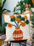 Toprak Vazoda Çiçekler Desenli Punch İşlemeli Kırlent
